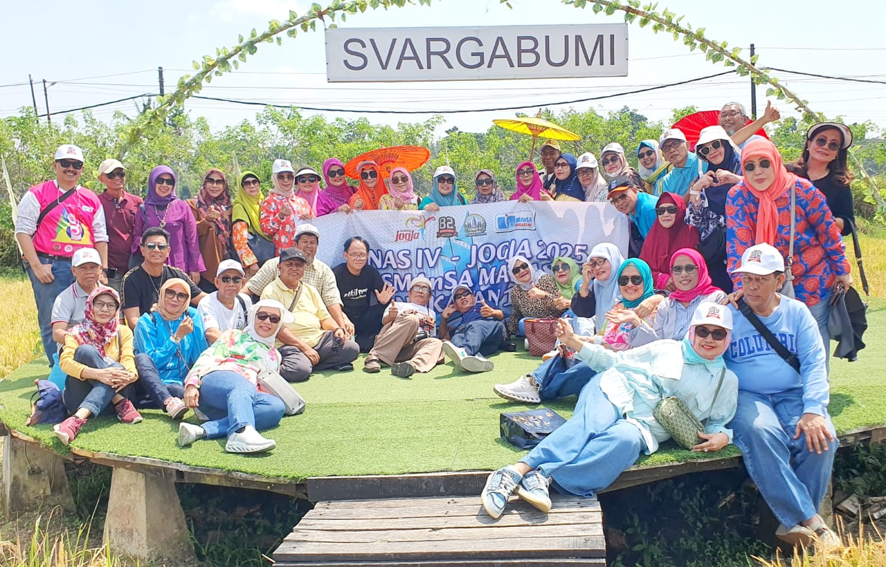 MAGELANG — Di hari kedua kunjungan mereka ke Yogyakarta, Jumat, 5 September 2025, rombongan alumni angkatan 1982 SMA Negeri 1 Makassar (SMANSA 82) kembali melanjutkan agenda wisata dengan semangat yang tak kalah dari anak muda. Kali ini, Svargabumi destinasi wisata alam yang tengah naik daun di Kabupaten Magelang, Jawa Tengah menjadi tujuan utama mereka.