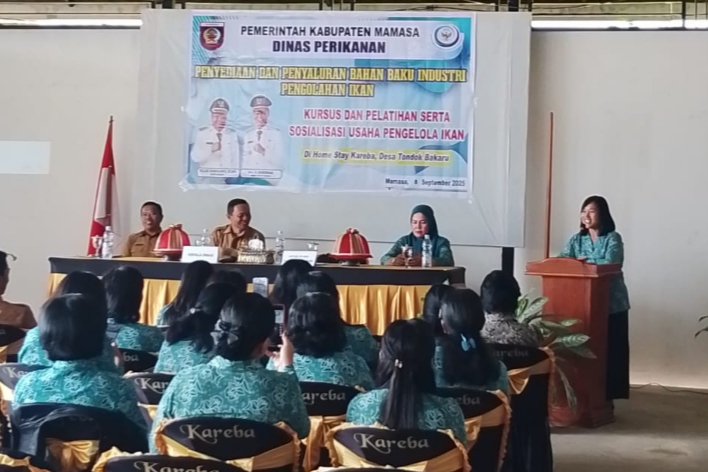 Dinas Perikanan Kabupaten Mamasa, Sulawesi Barat menggelar kegiatan Penyediaan dan penyaluran bahan baku industri pengolahan ikan, di Home Stay kareba Desa Tondook bakaru, 8/9/2025.