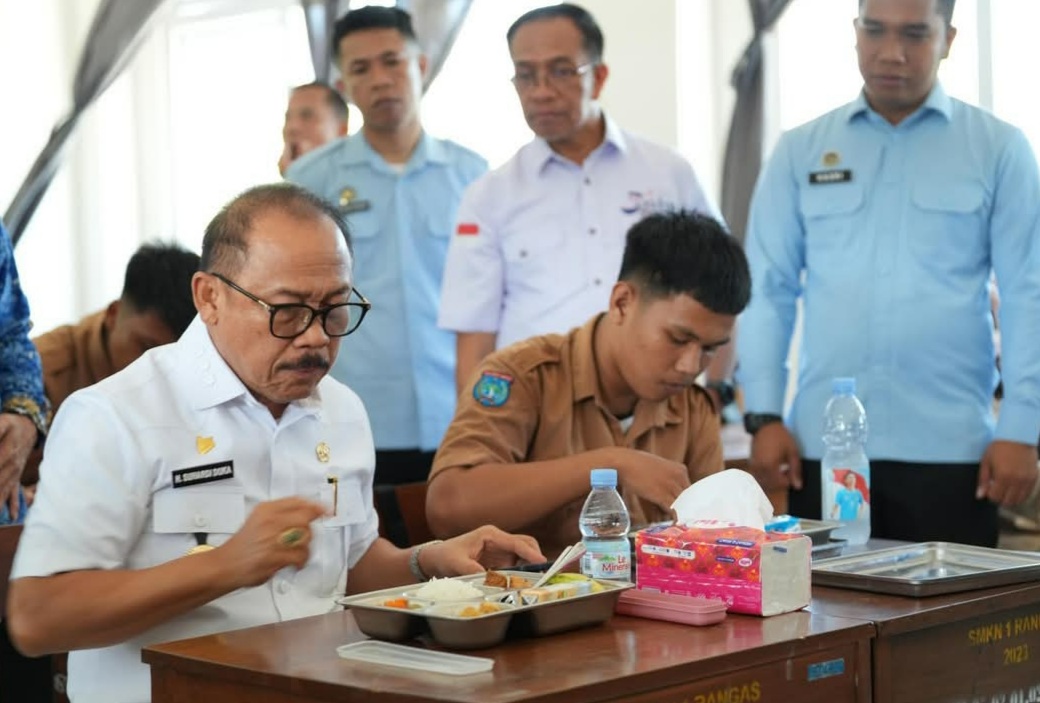 MAMUJU — Gubernur Sulawesi Barat Suhardi Duka melakukan peninjauan langsung terhadap pelaksanaan Program Makan Bergizi Gratis (MBG) di dua titik layanan, yakni Sentra SPPG Simboro dan SMK Negeri 1 Mamuju. Dalam kunjungannya, Gubernur didampingi Kepala Dinas Ketahanan Pangan Sulbar Abdul Waris Bestari dan Tenaga Ahli Gubernur Hajrul Malik.