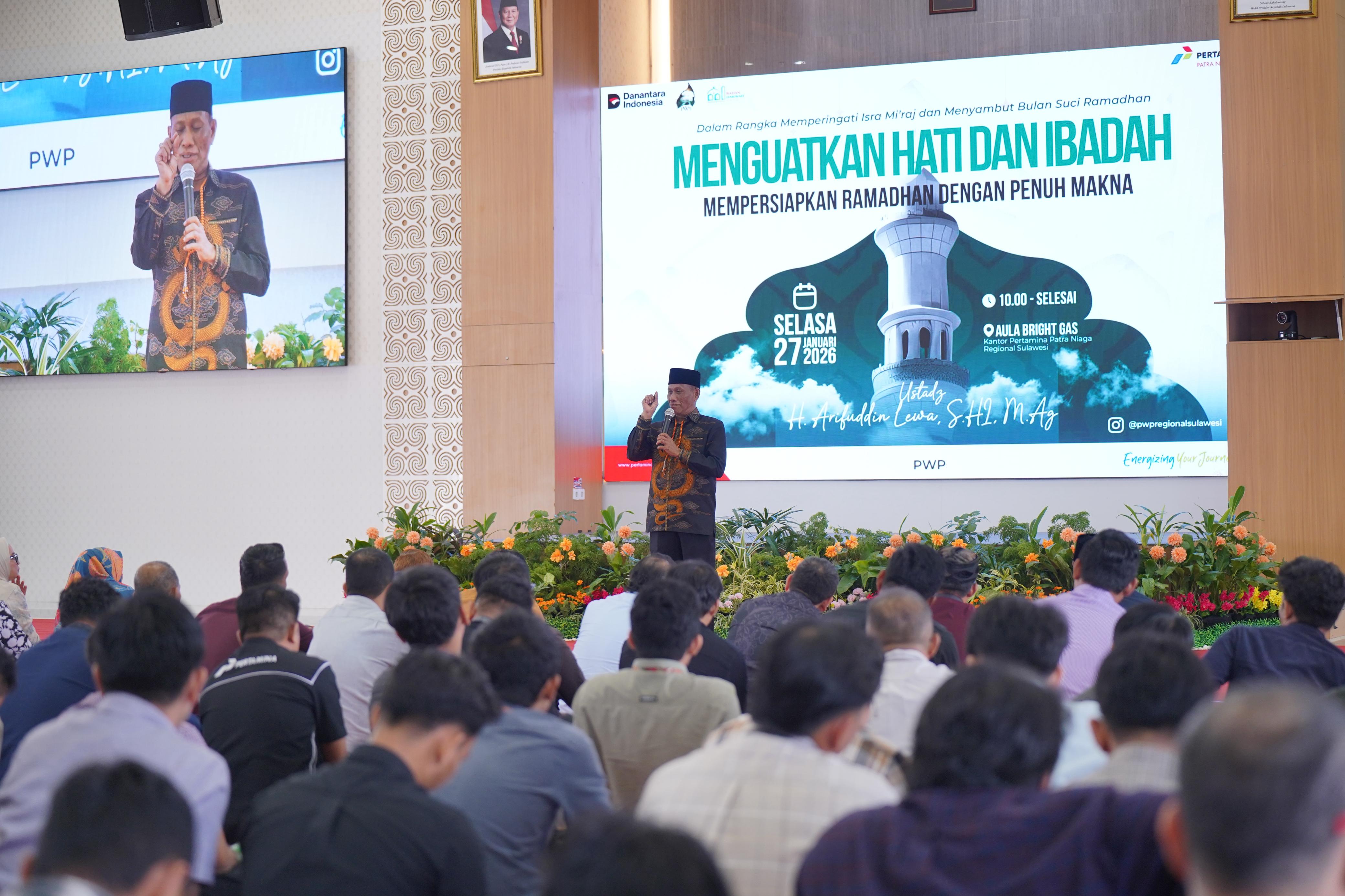 MAKASSAR — Dalam rangka memperingati Isra’ Mi’raj Nabi Muhammad SAW sekaligus menyambut datangnya bulan suci Ramadhan, Pertamina Patra Niaga Regional Sulawesi menggelar kegiatan bertema “Menguatkan Hati dan Ibadah, Mempersiapkan Ramadhan dengan Penuh Makna”. Kegiatan ini berlangsung di Aula Bright Gas, Kantor Pertamina Patra Niaga Regional Sulawesi.