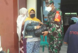 Babinsa Kawal Distribusi Bantuan Sembako untuk Warga Terdampak Covid-19