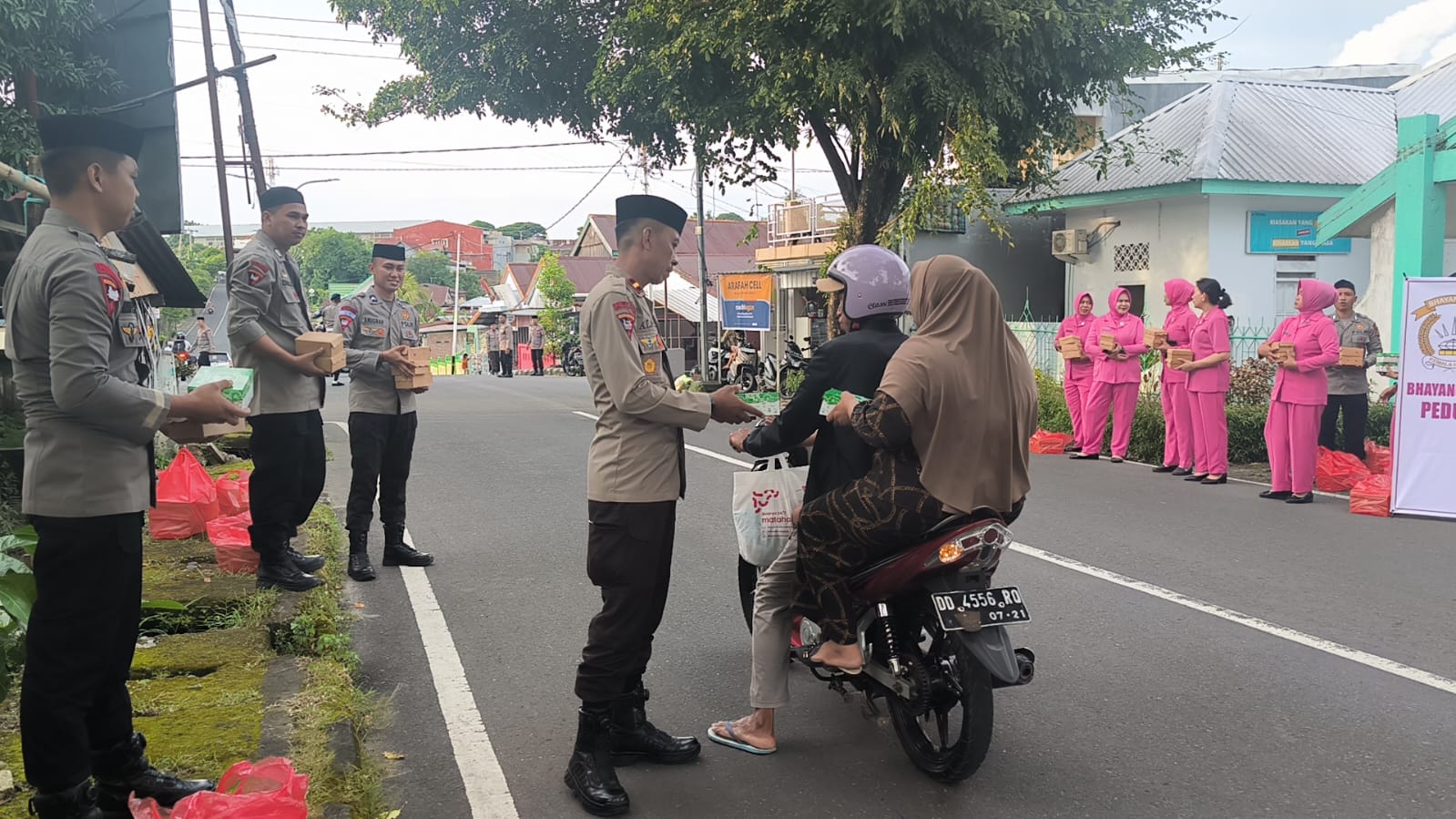 Personel Batalyon B Pelopor Brimob Polda Sulsel Bersama Bhayangkari Bagikan Takjil di Hari ke-26 Ramadan