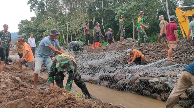 Antisipasi Banjir di Riso,TMMD Ke 121 Buat Normalisasi Sungai dan Bronjong 430 meter