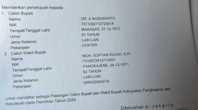 JAKARTA, KILASSULAWESI-- Pasangan Calon Bupati dan Wakil Bupati Pangkep Dokter Cuaca - Sofyan Razak resmi mendapatkan […]