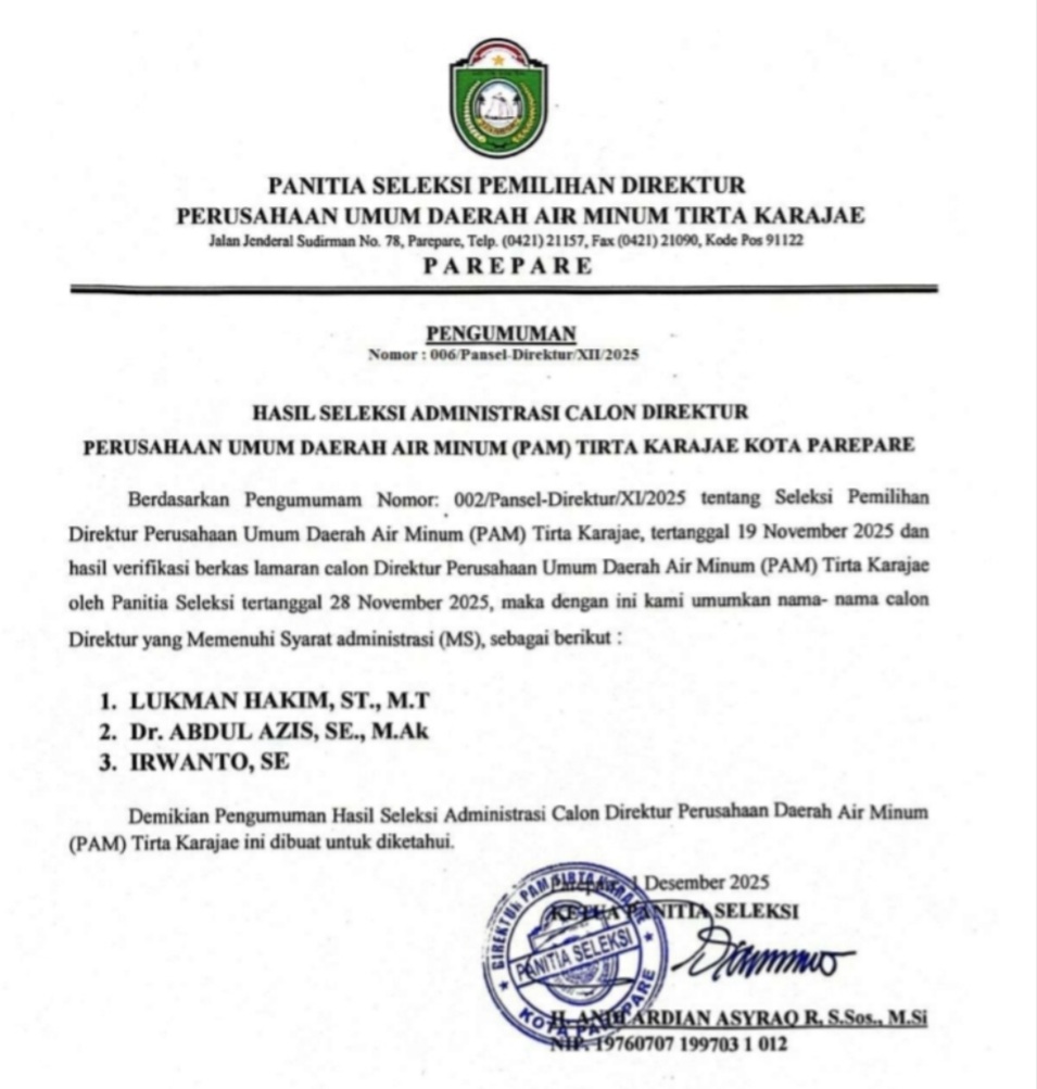 PAREPARE, KILASSULAWESI-- Panitia seleksi pemilihan dewan pengawas Perusahaan Umum Daerah (Perumda) Air Minum Tirta […]